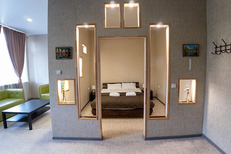 Есть номера с четырьмя раздельными кроватями в одной комнате.