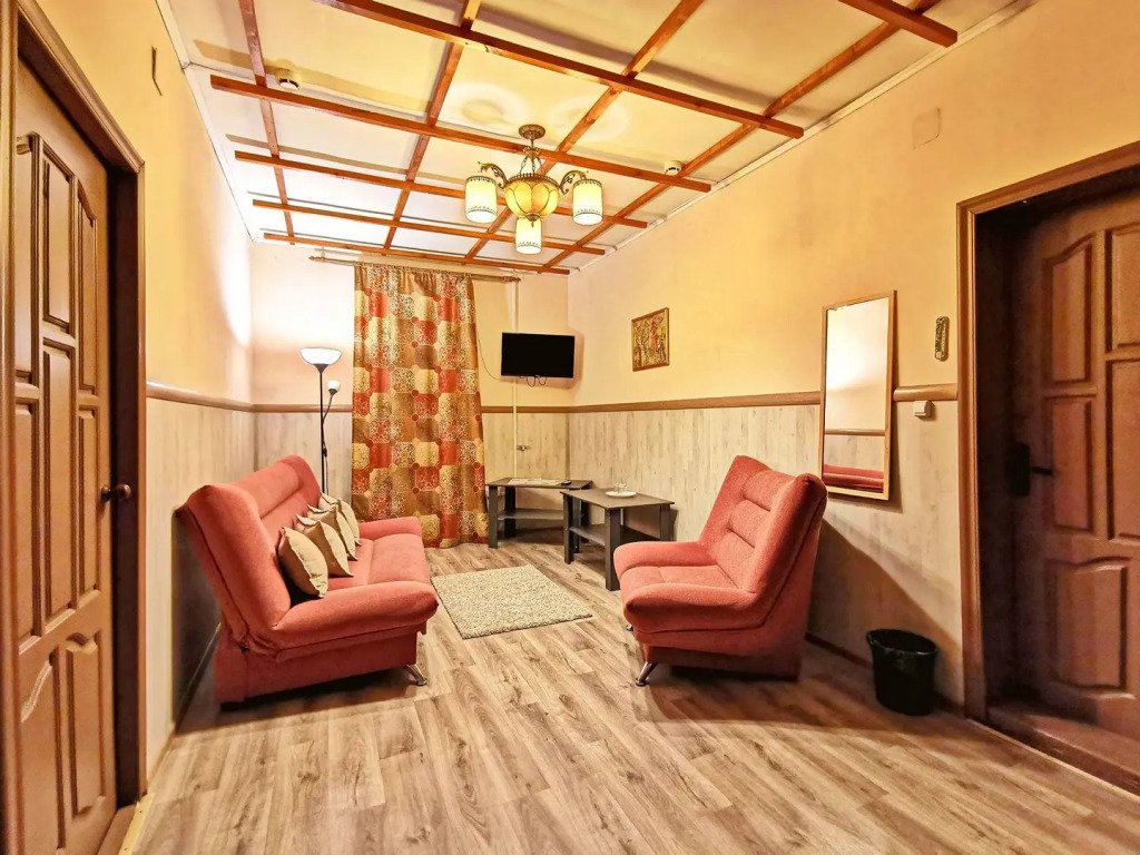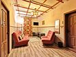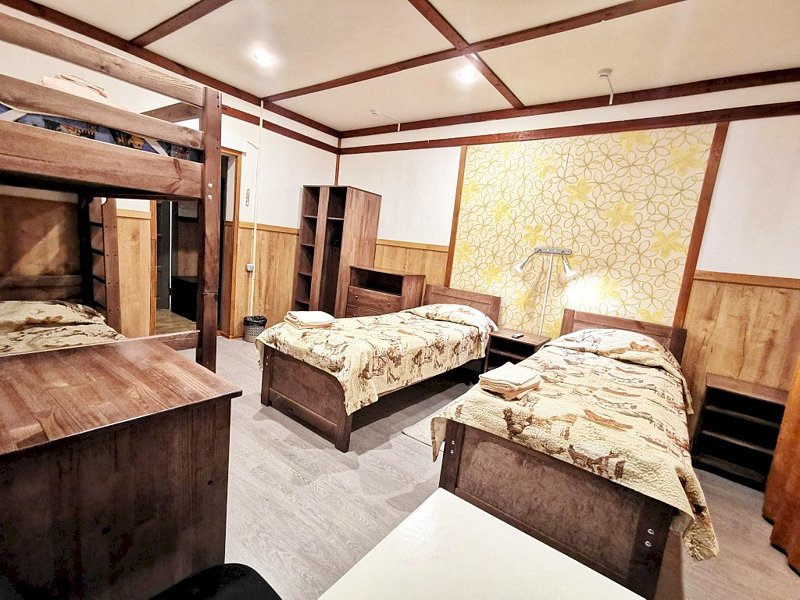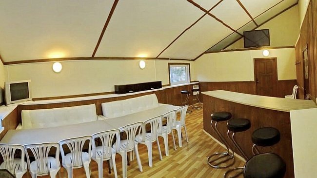 В левом крыле расположен Трехкомнатный блок категории "Стандарт-ХОЛЛ" - идеальный вариант для больших компаний. Общий холл, площадью 15 м2, в холле: стулья, стол, диван, холодильник, ванная комната и 3 комнаты, в каждой кровати, шкаф, туалет, телевизор.