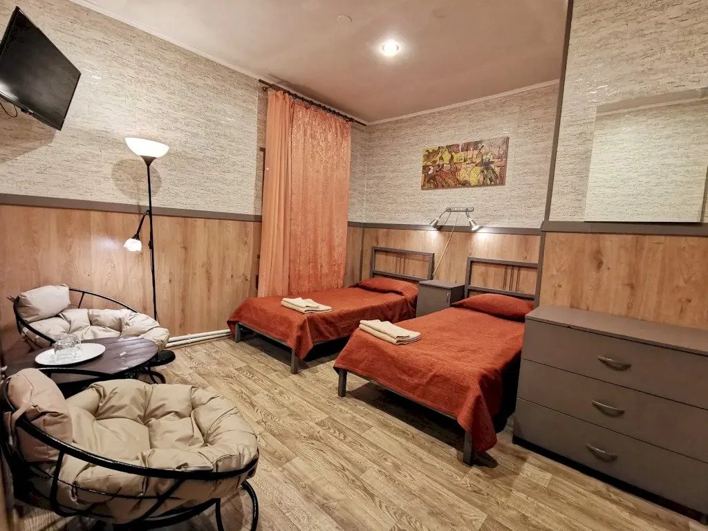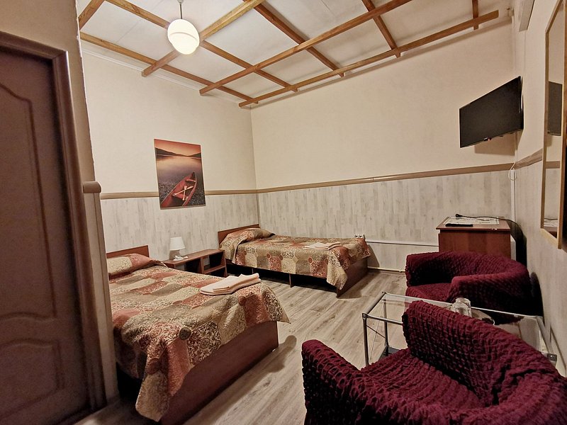 № 1.1.1 18 м2, основных мест 2. Возможно дополнительное размещение на евро-раскладушке. В комнате: спальные места, шкаф, тумбочки, телевизор, туалет и раковина. Холодильник и ванная на блок.