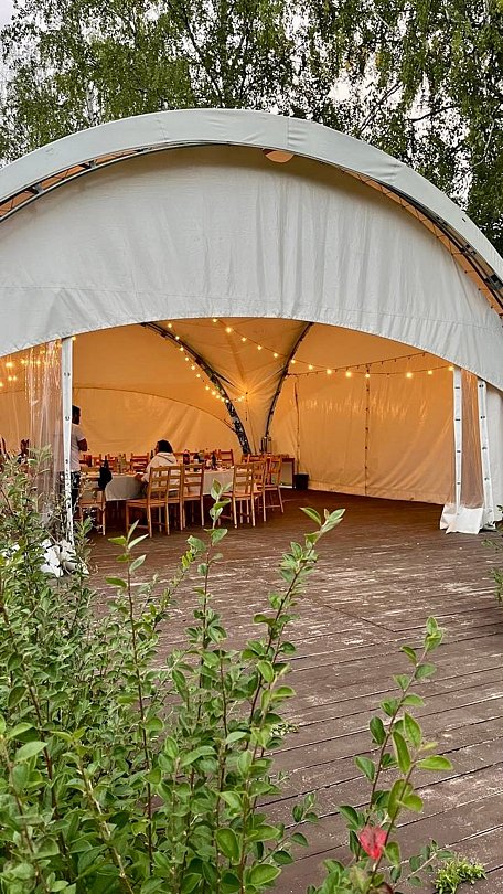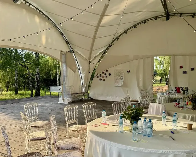 Белоснежный шатер, способный вместить до 60 человек — это идеальное место для незабываемых свадеб, ярких выпускных, стильных корпоративов и торжественных юбилеев, где каждый момент станет поистине особенным. Погрузитесь в атмосферу утонченности и комфорта, наслаждаясь праздником в элегантном окружении на протяжении 6 часов и более.