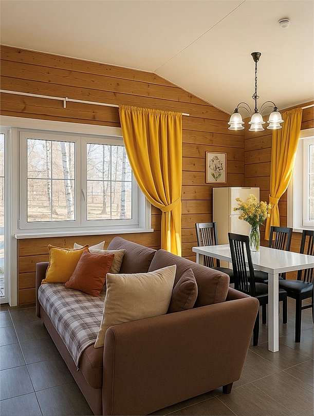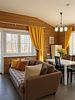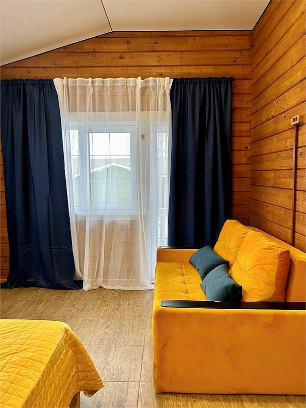 В номере комфортно могут разместиться 2 взрослых с возможностью добавить доп. места. Основное спальное место - большой раскладывающийся диван. Дополнительное спальное место - диван шириной 120 см.