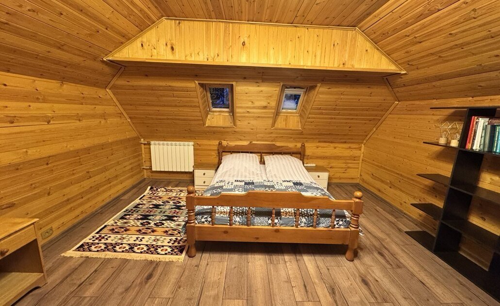 Коттедж может комфортно разместить десять гостей, пять просторных спален, имеется возможность разместить дополнительно десять гостей. Стол рассчитан на шестнадцать персон.