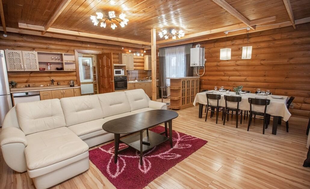 Здесь созданы все условия для комфортного пребывания: просторный гостиный зал, пять спален, Wi-Fi, караоке и доступ к популярным стриминговым сервисам КиноПоиска и IVI. К услугам гостей также русская баня на дровах, беседка на двенадцать персон и десять удобных парковочных мест. Внутри резиденции гостей ждет полная комплектация необходимой посуды, кухонной утвари, полотенец, постельного белья и даже удобная обувь вроде тапочек, кроксов и резиновых сапог. Все удобства дополнены современной бытовой техникой, включая посудомоечную машину, стиральную машинку, духовку, кондиционер и фильтрованную воду.