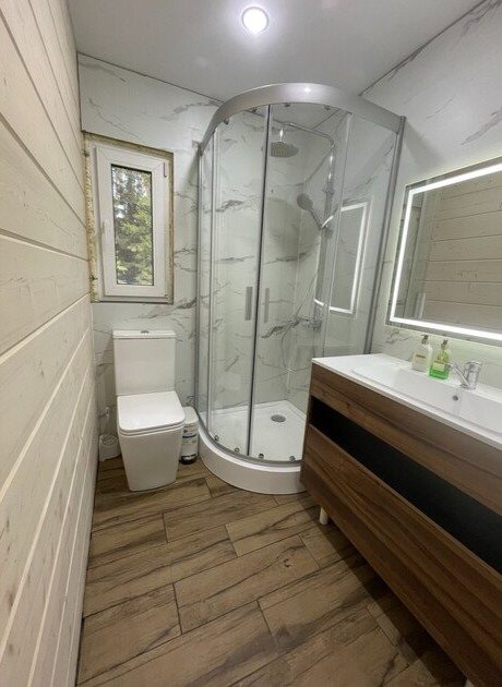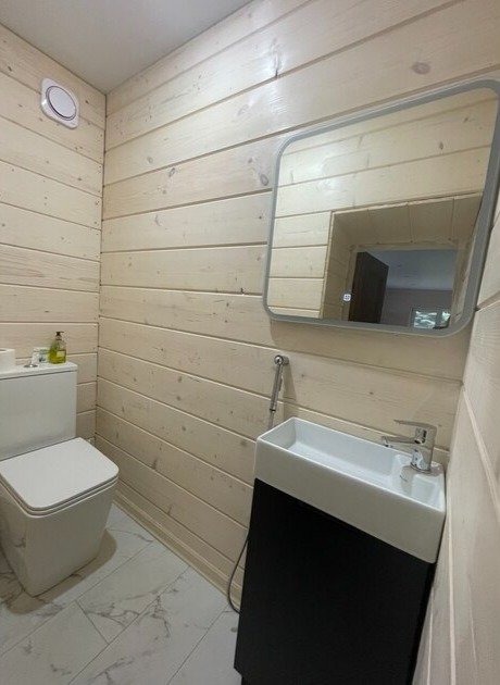 В доме есть: посудомоечная и стиральные машины, микроволновая печь, духовой шкаф, газовая плита, фильтр для питьевой воды, туалетные принадлежности, фен, утюг, сплит система кондиционирования. Три туалета, биде, гигиенический душ, две ванных комнаты.
