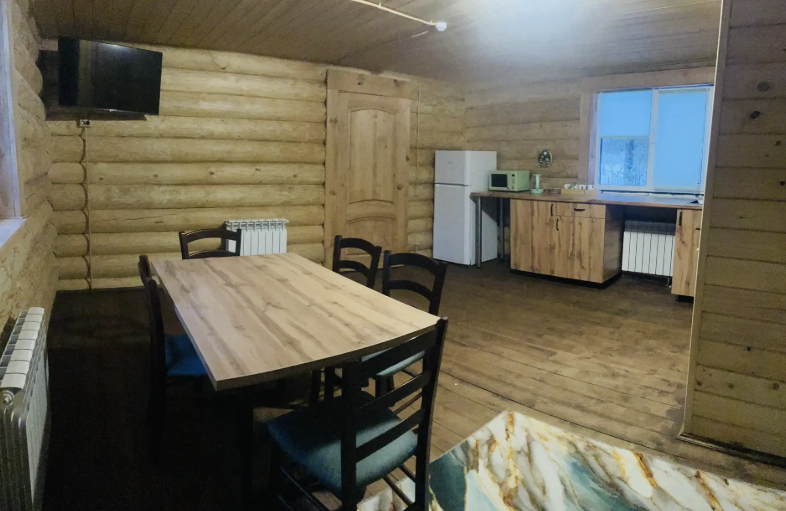 Инфраструктура: зона отдыхаБольшая баня на туристической базе «Уста» предлагает своим гостям просторную парилку с печью, а также уютную комнату отдыха, оборудованную столом, диваном, лавкой и телевизором. В комнате отдыха имеется чайник, травяной чай и стаканы для удобства гостей.