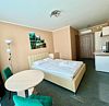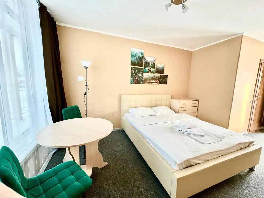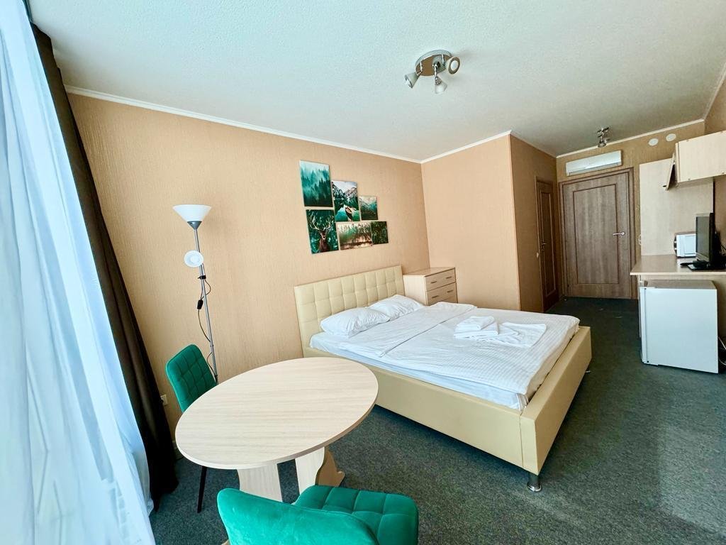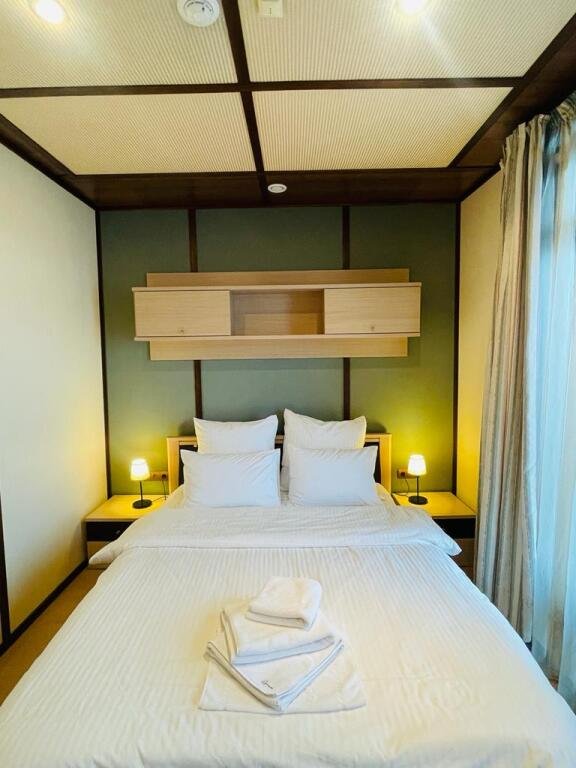 Номер уютно обставлен и оснащён необходимым, чтобы отдохнуть после долгого и насыщенного дня. Имеются телевизор и халат. Перечисленные услуги есть не во всех номерах.