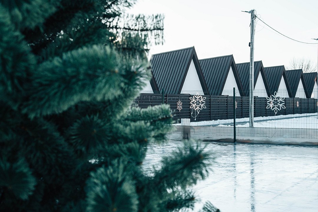 Зимой на территории глэмпинга работает каток, прокат зимнего спортивного инвентаря и фудкорт.