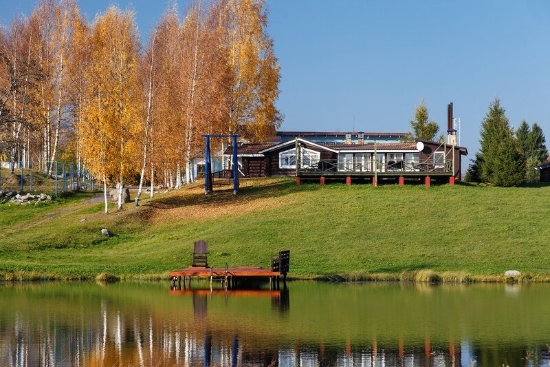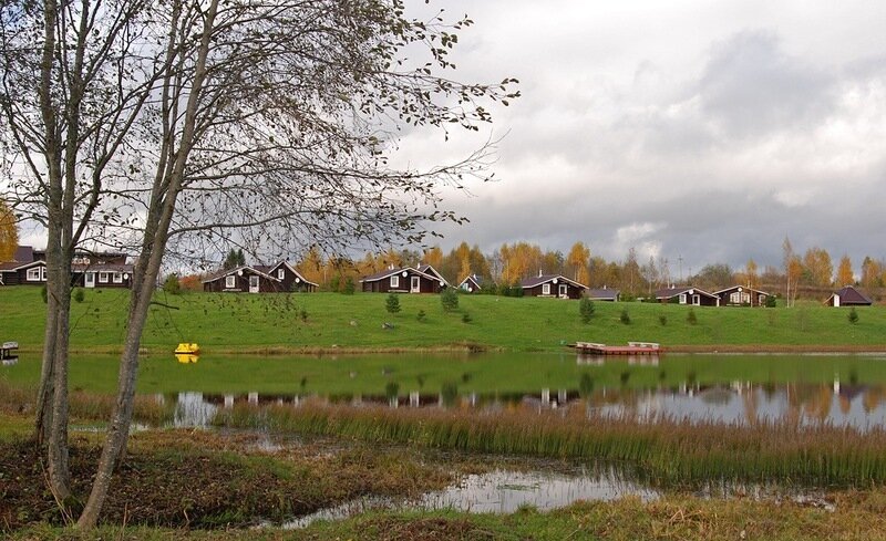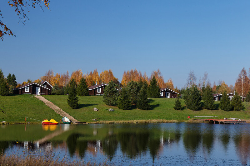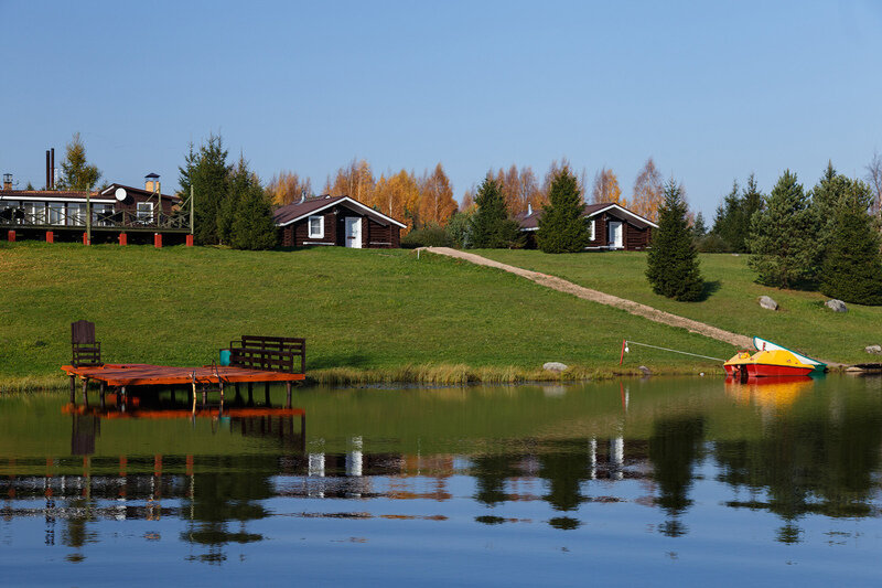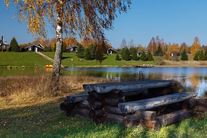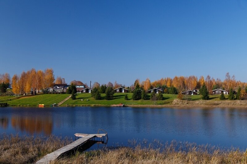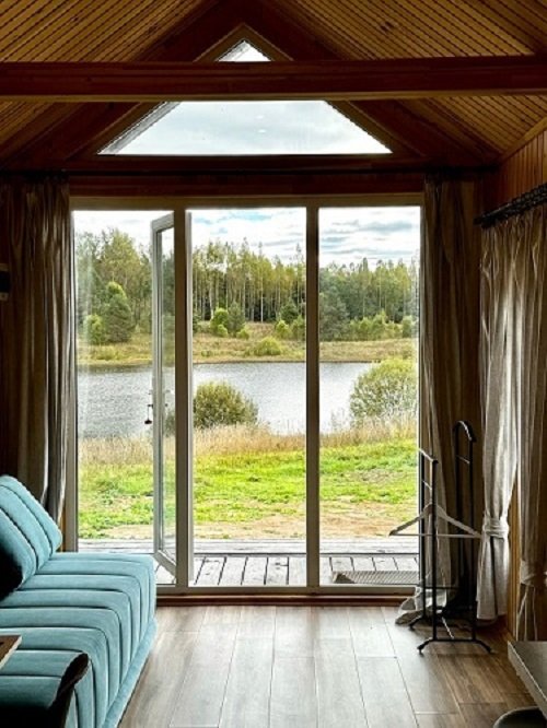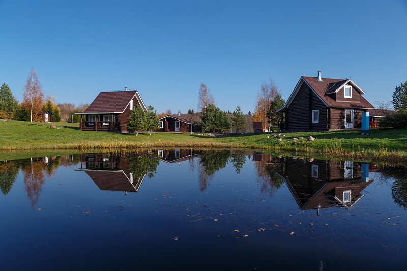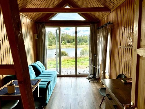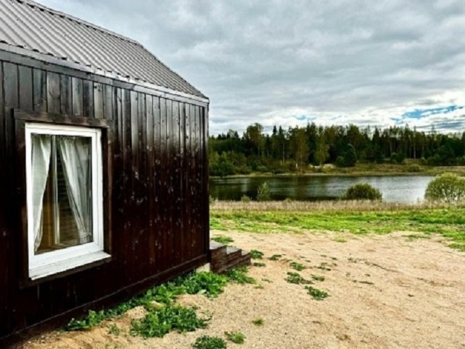 Домики расположены на первой линии у воды. С террасы каждого из них открывается умиротворяющий вид на лесное озеро.