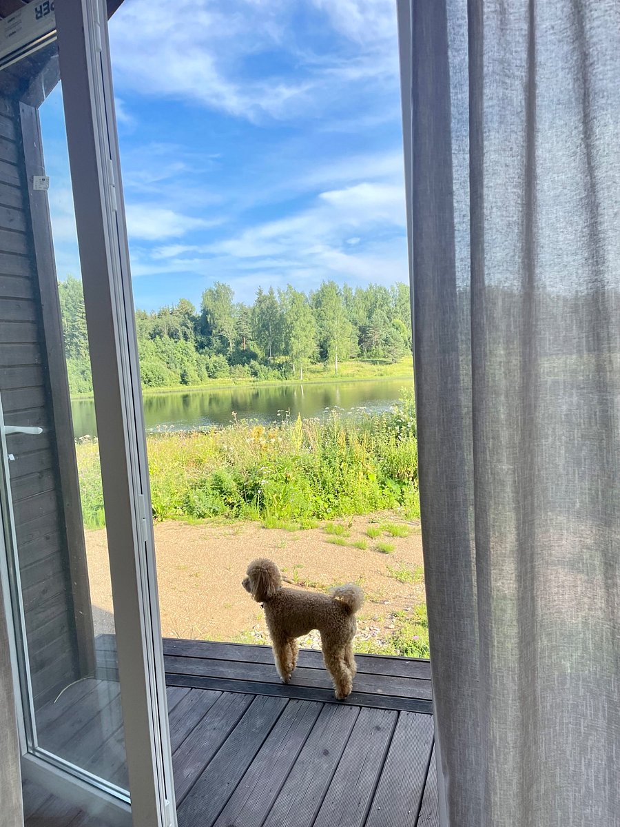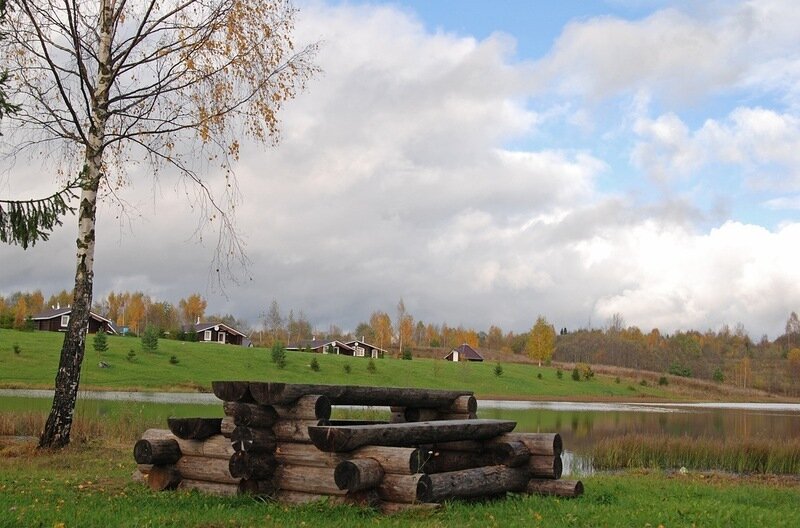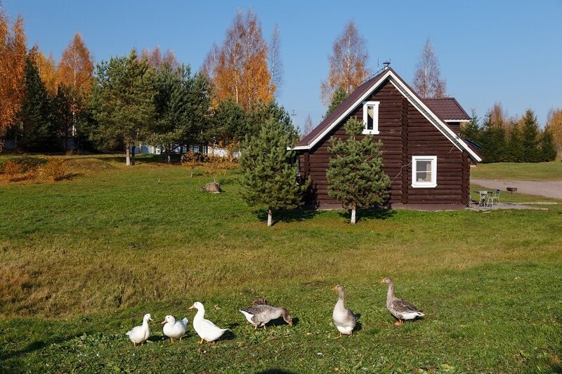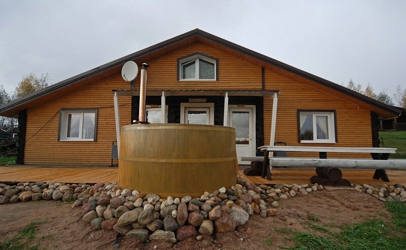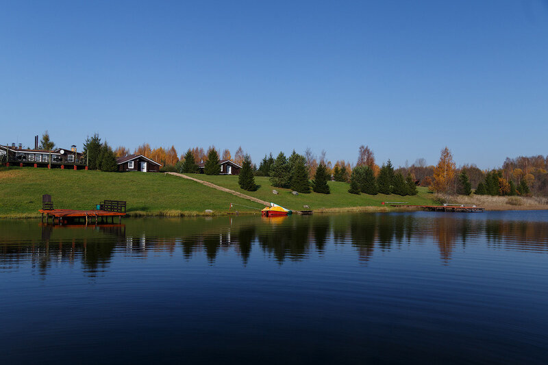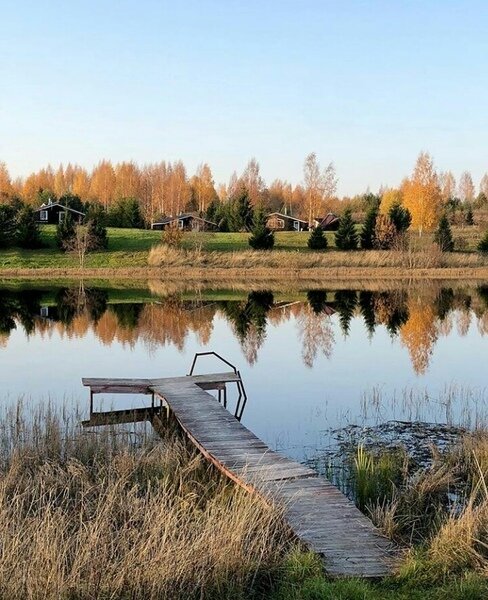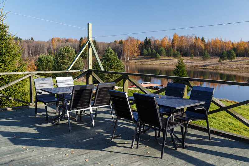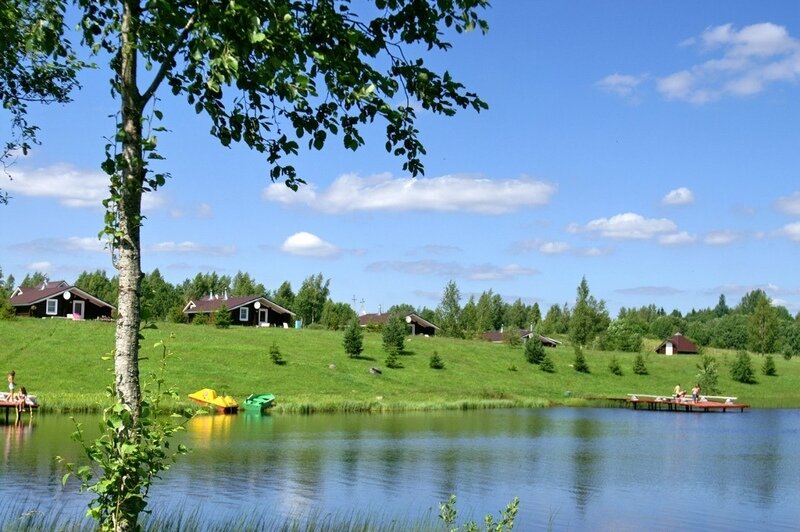 Домики расположены на первой линии у воды. С террасы каждого из них открывается умиротворяющий вид на лесное озеро.