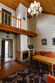 В зале: камин, ЖК-телевизор, раскладной диван, кресло-кровать, стол.