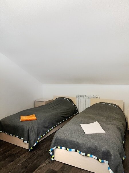 Двухместный стандарт с двумя раздельными кроватями и общей ванной комнатой.