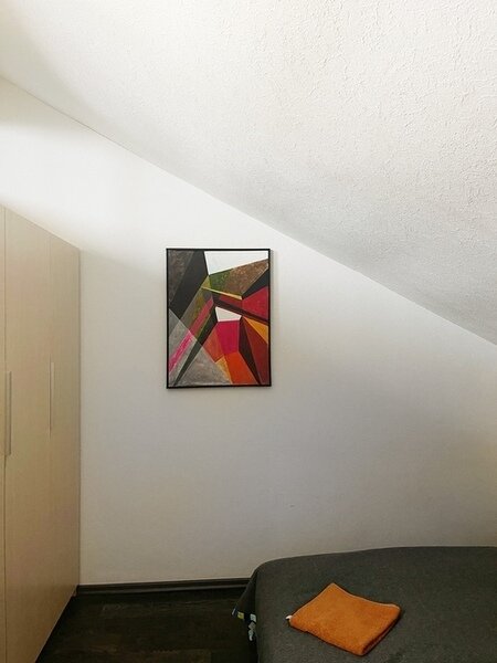 Спальня 2: двуспальная кровать, комод, выход на балкон.