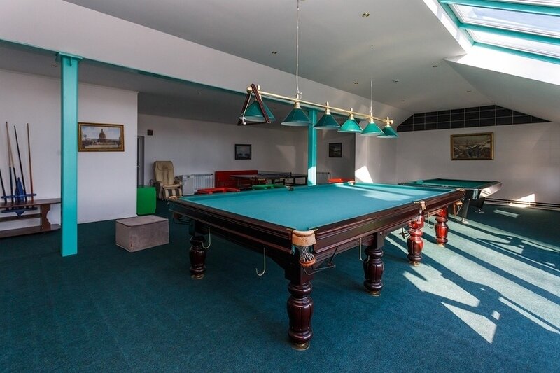 На территории доступны бани с сауной и общим бассейном, спортивными площадками для волейбола, футбола и баскетбола, настольный теннис, бильярд и прогулочная лыжная трасса. Можно арендовать коньки, лыжи, катамаран, сноуборд, тюбинг, лодку и удочки.