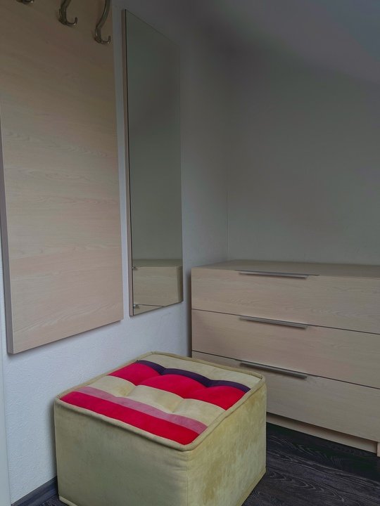 - спальни на втором этаже: двуспальная и полуторная кровать, комод.