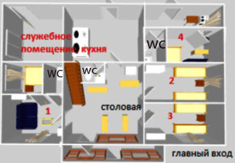Однокомнатный номер, не имеет кухни, рассчитан на проживания трех человек.
