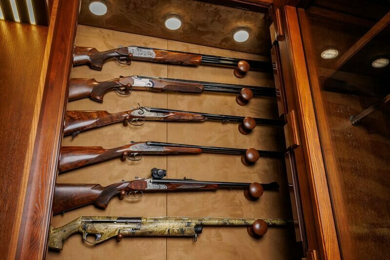 Хранение личного охотничьего оружия, патронов и снаряжения осуществляется в специально оборудованной оружейной комнате.