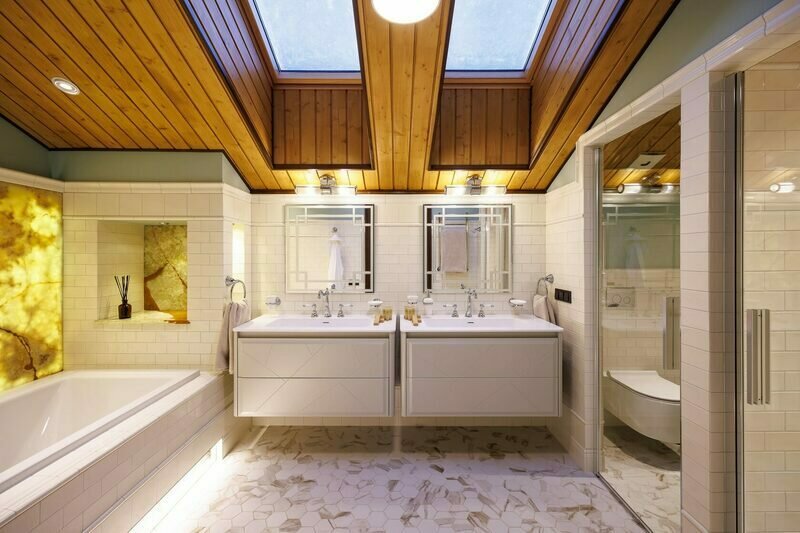 В большом гостевом доме обустроено 7 спален, способных с комфортом разместить до 14 человек. В каждой спальне есть все необходимое для удобного и длительного проживания: современная и светлая ванная комната, свой отдельный удобный туалет и продуманная гардеробная зона для хранения одежды.