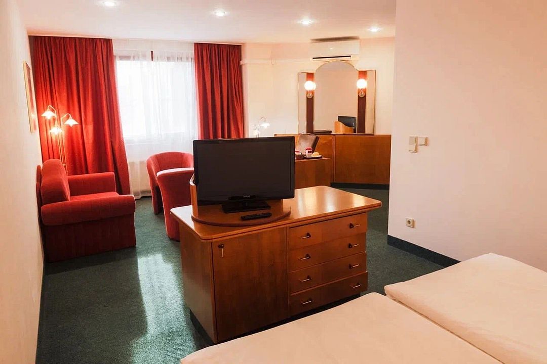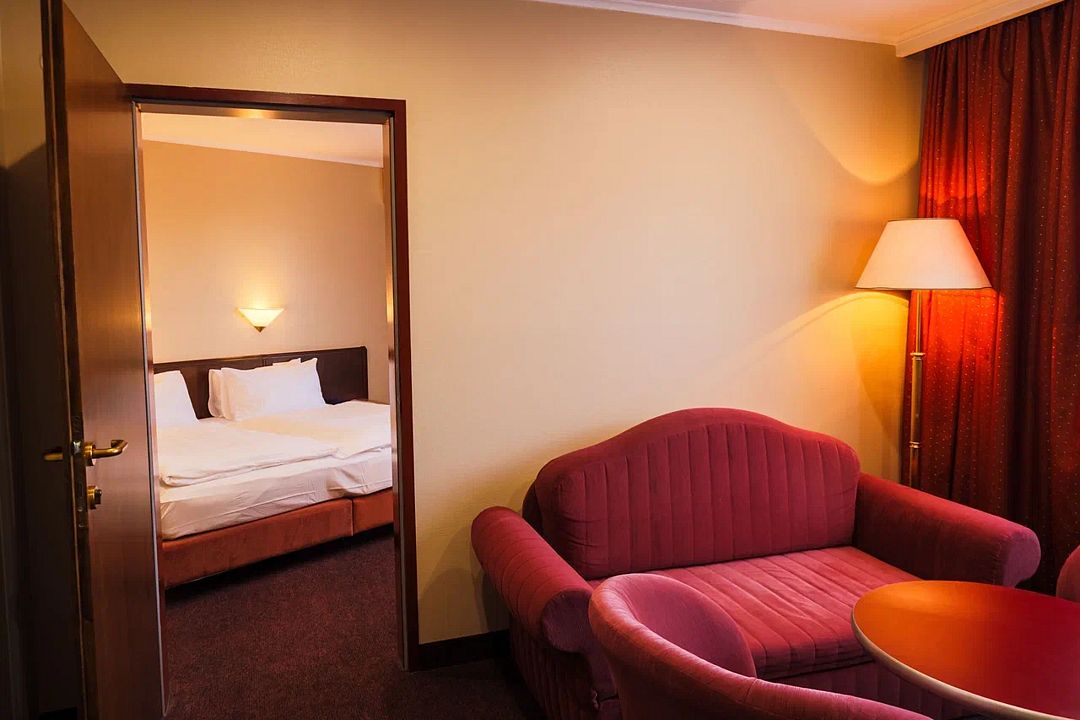 - Бесплатное посещение бассейна и саун 08-22:00 (по понедельникам с 14-22:00) для гостей, проживающих в номерах "Джуниор-сюит", "Люкс", "Апартаменты".