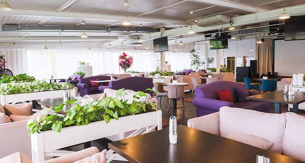 - Основной зал ресторана “Галерея”. Настроение помещению задают легкая фоновая музыка и насыщенные цвета живописных полотен. Ресторан “Галерея” – это многофункциональное помещение со множеством вариантов для размещения, которое располагает всеми техническими возможностями для проведения масштабных мероприятий численностью до 200 гостей. По индивидуальным запросам ресторан может быть использован для закрытых мероприятий. В теплое время года работает летняя терраса.