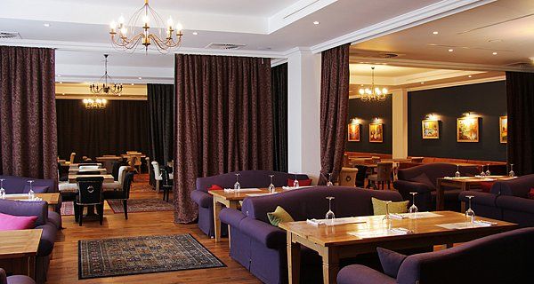 Просторный зал ресторана, оснащенный профессиональным звуковым и световым оборудованием, подходит для проведения банкетов и готов вместить в себя до 250 гостей.
