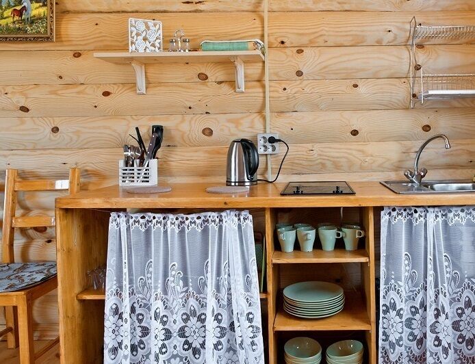 Электрические обогреватели, кухонный уголок, оснащенный всем необходимым, спутниковое телевидение, туалет и раковина с холодной и горячей водой.