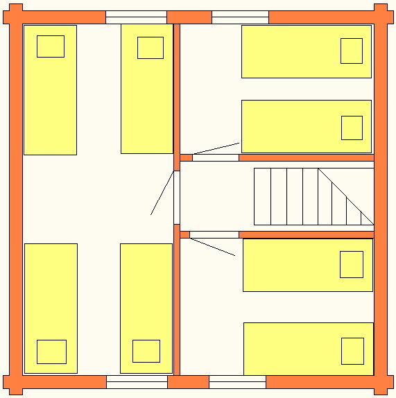 Этот коттедж рассчитан на 4 — 6 человек. Коттедж состоит из комнаты и крыльца, двухъярусные кровати встроены в стены домика, дровяная печь. Также в коттеджах есть: электрические обогреватели, кухонный уголок, оснащенный всем необходимым, спутниковое телевидение, туалет и раковина с холодной и горячей водой.