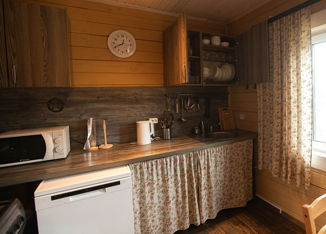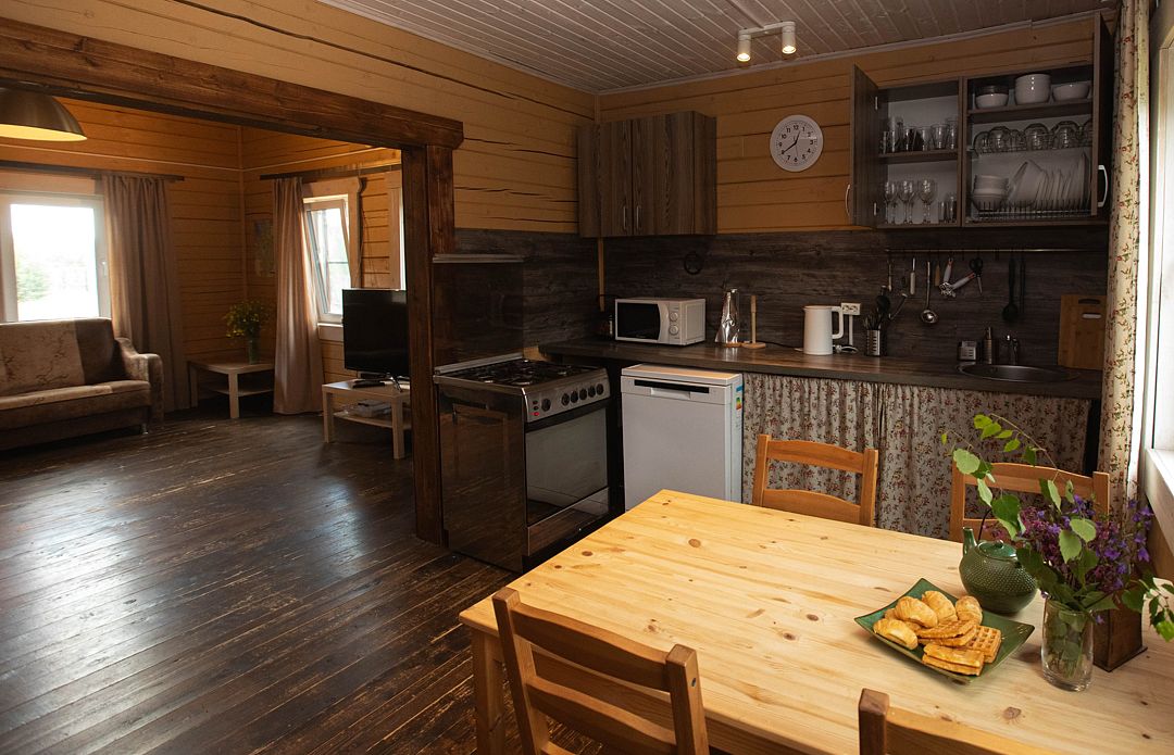 В домах вас ожидают комфортные условия для отдыха. Кухня оборудована всем необходимым для приготовления пищи: газовой плитой, посудой и всем необходимым для комфортного проживания. В домах есть все необходимое: водопровод, канализация, горячая и холодная вода, душевая кабина, стиральная машина, сушилки и холодильник. Для вашего удобства предоставляется спутниковое телевидение, быстрый интернет и мобильная связь. Из окон открываются захватывающие виды.