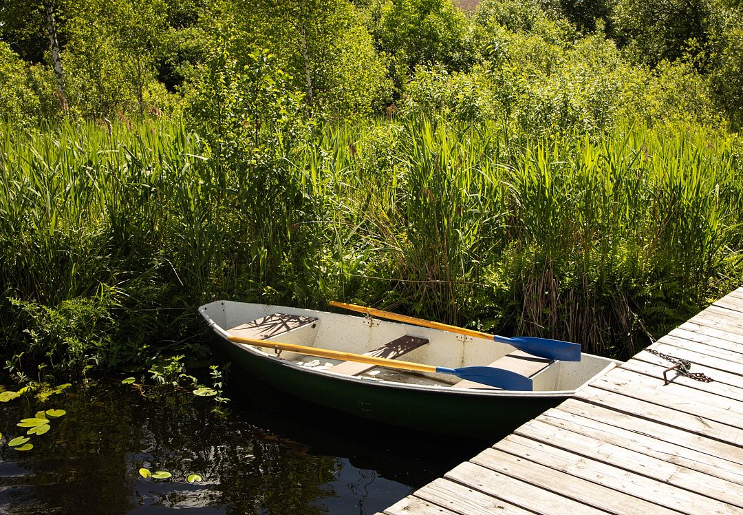 Выход к озеру 2 минуты пешком / 100 метров через собственный пирс, сразу глубоко, две лодки, можно купаться, загорать, ловить щуку, леща, окуня, линя и других рыб.