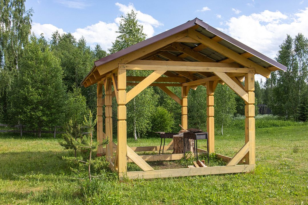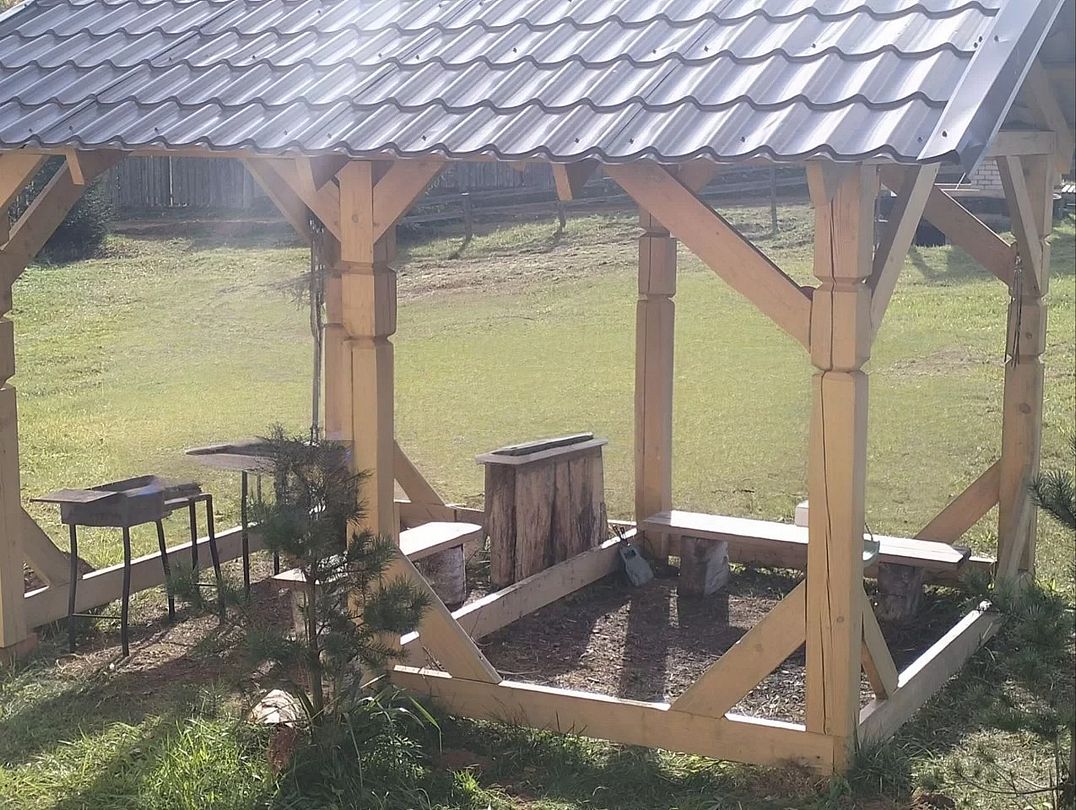 Рядом расположена мангальная зона, сухие дрова, мангал, шампуры, решетки, есть коптильня и казан. Особое удовольствие от приготовления мяса или рыбы на открытом огне!