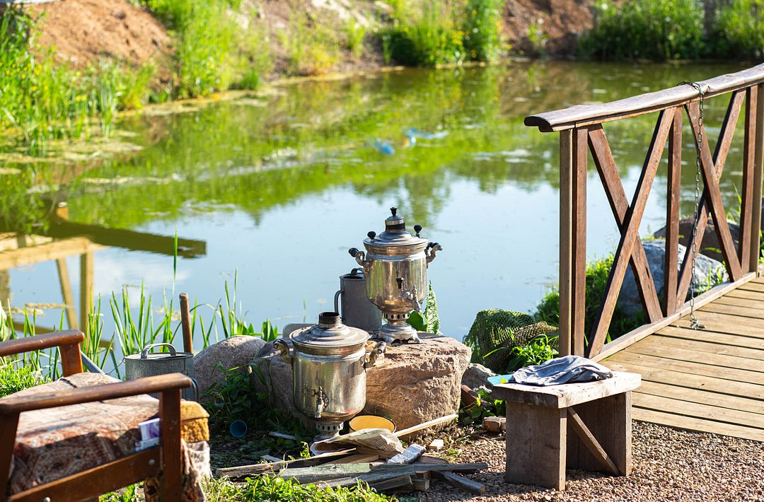 По заказу приготовят русскую баню, выдадут березовые или дубовые веники, банные шапки, полотенца, простыни, воду, чай, мёд, дрова для мангала, шампуры, решетку, казан.