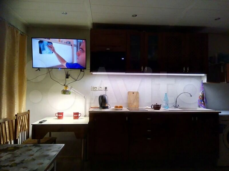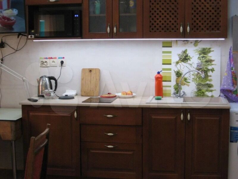 Техника: холодильник, плита, микроволновка, стиральная машина, водонагреватель, телевизор, фен, утюг
