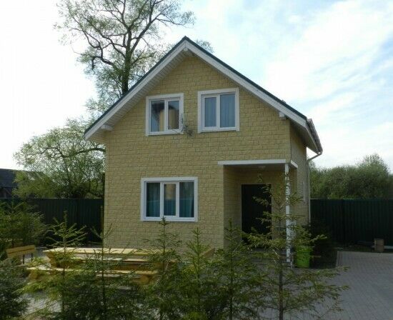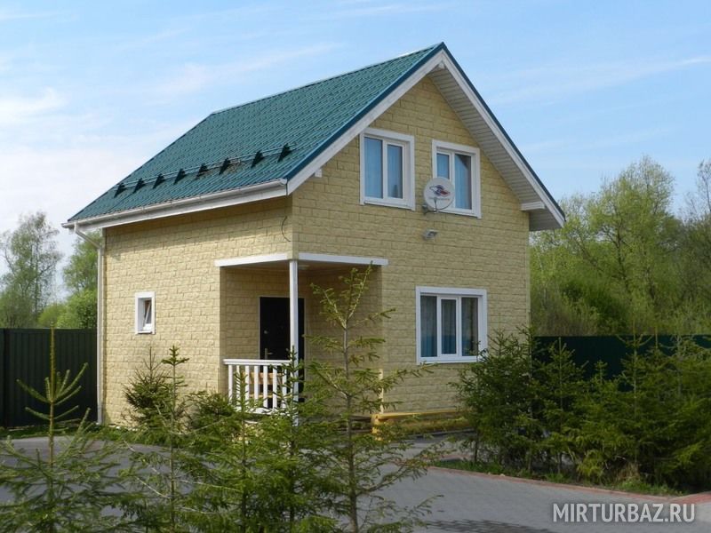 Двухэтажный коттедж, состоит из крыльца, прихожей, туалетной комнаты, гостевого зала с кухней на первом этаже, а на втором, холла и двух спален.
