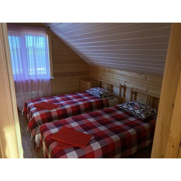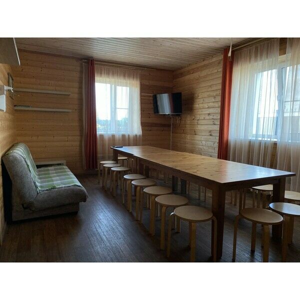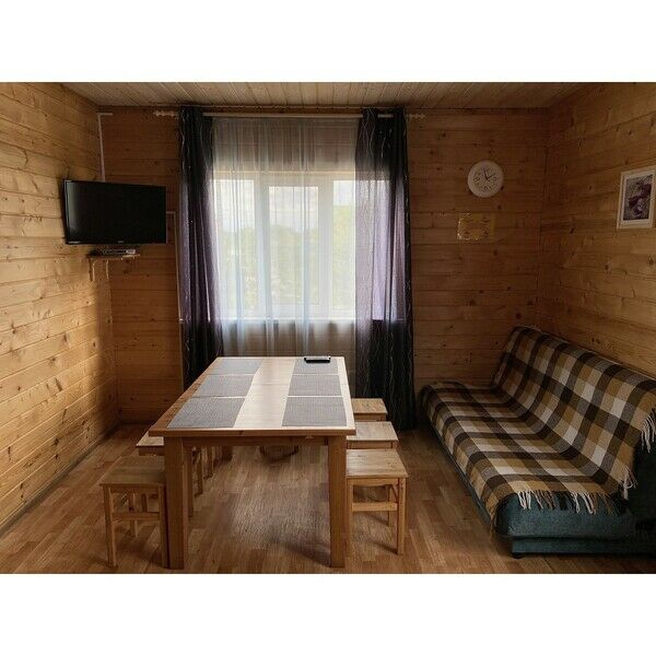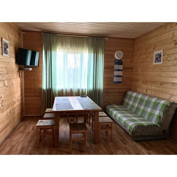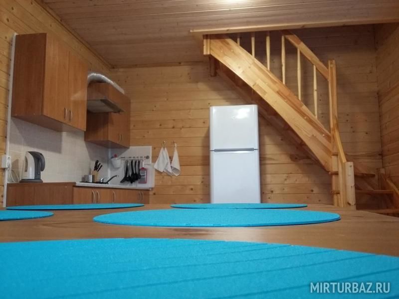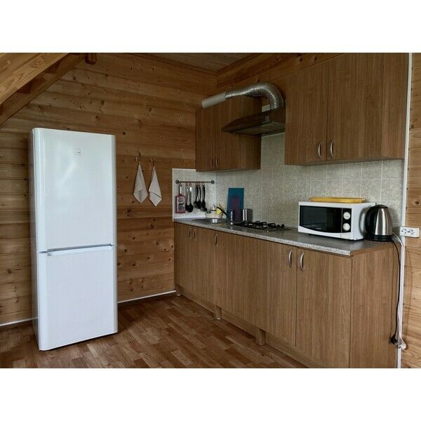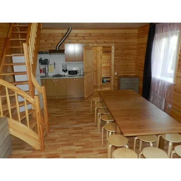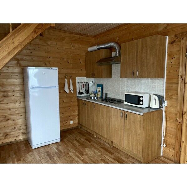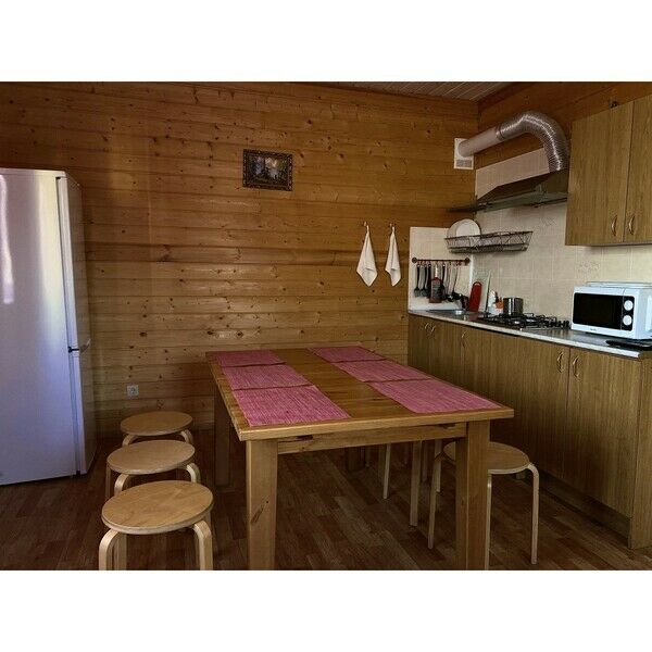 Первый этаж: кухня-гостиная, прихожая, туалетная комната. Второй этаж: общий холл и две изолированные спальни. Постельное белье, полотенца, кухонная посуда входят в стоимость проживания. На придомовой территории расположены: барбекю зона с мангалом, казаном и большим столом для отдыха на улице.