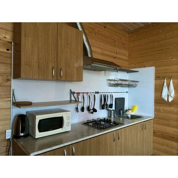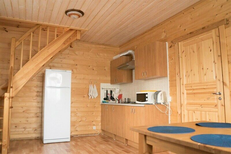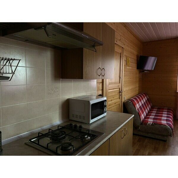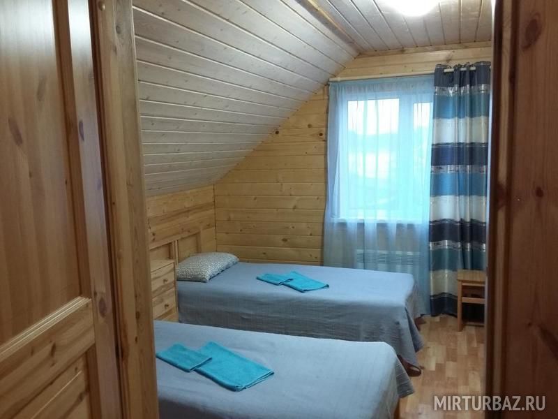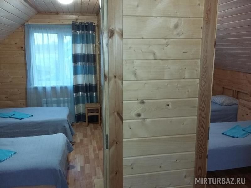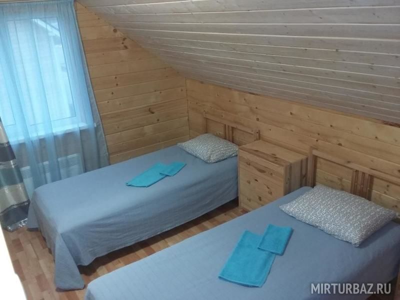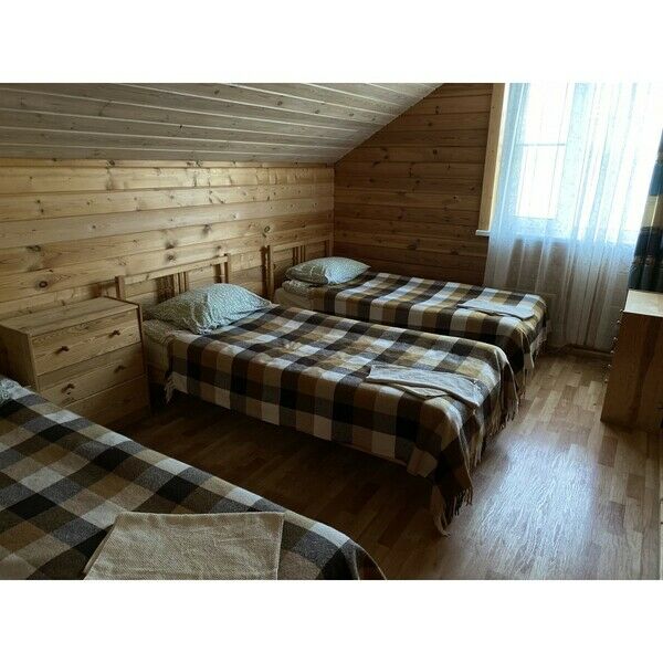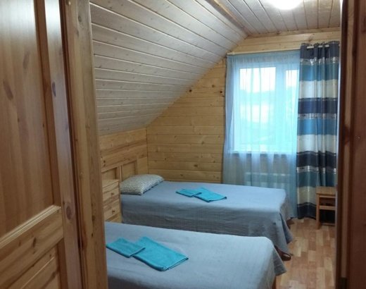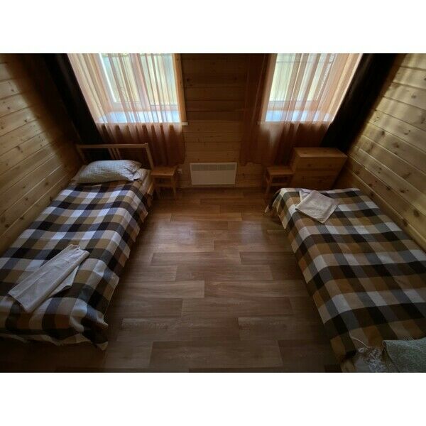 Первый этаж: кухня-гостиная, прихожая, туалетная комната. Второй этаж: общий холл и две изолированные спальни. Постельное белье, полотенца, кухонная посуда входят в стоимость проживания. На придомовой территории расположены: барбекю зона с мангалом, казаном и большим столом для отдыха на улице.