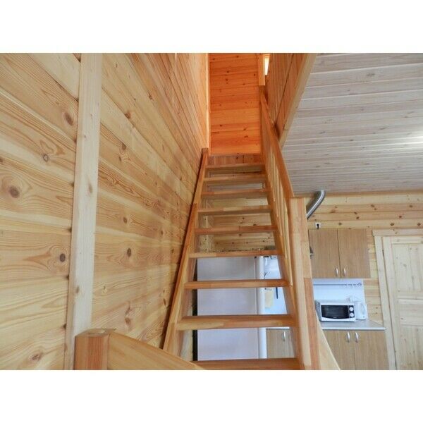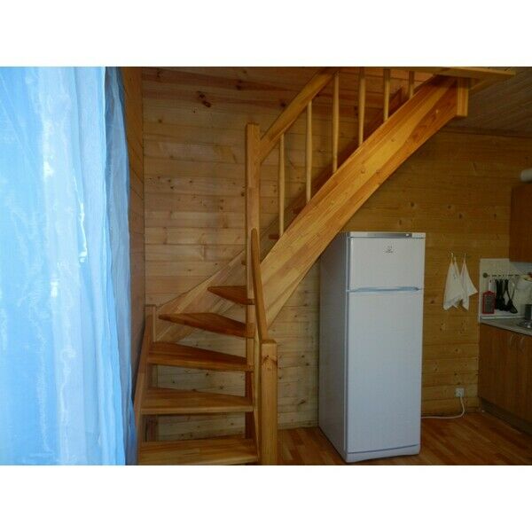 Отдельная зона прихожей и туалетной комнаты, создает комфортное пребывание в большой гостиной с телевизором, обеденным столом и двухместным диваном. Высокие потолки и светлые окна дают ощущения легкости и простора. Современные технологии эл.конвекторов, позволяют контролировать тепло и домашний уют в любое время года. Из кухни, винтовая лестница проведет Вас на второй этаж, где расположены холл с раздвижным диваном и четыре спальных места на две комнаты, по два в каждой.