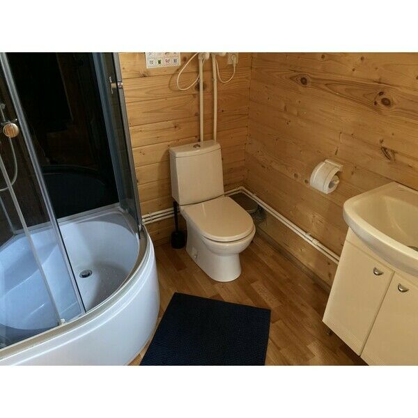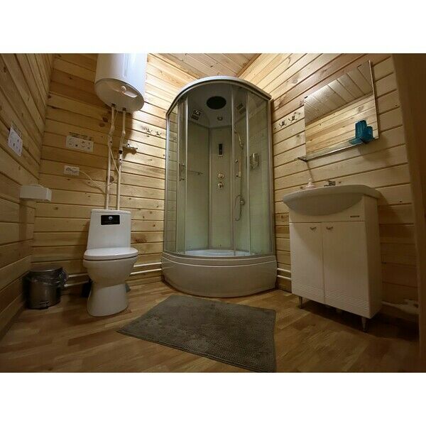 В коттедже есть все необходимое: постельное белье, полотенца, двухкамерный холодильник, печь СВЧ, газовая плита, эл.чайник, посуда для приготовления и сервировки стола, спутник-ТВ, ЖК-ТВ с возможностью просмотра DVD с флэшки, туалетная комната оборудована душевой кабиной и объемным бойлером, который обеспечивает бесперебойную подачу горячей воды.