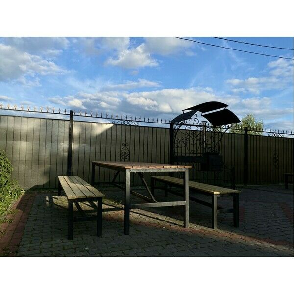 • барбекю зона с мангалом и столом для отдыха на улице.