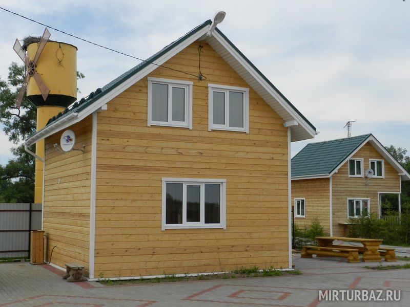Загородный отдых на базе отдыха «Глухарь клуб» в полностью оборудованном коттедже «Янтарь». Двухэтажный дом имеет площадь 70 м2 и рассчитан на проживание до 8 человек. • Первый этаж: кухня-гостиная, прихожая, туалетная комната. • Второй этаж: общий холл и две изолированные спальни. Постельное белье, полотенца, кухонная посуда входят в стоимость проживания. На придомовой территории расположены: барбекю зона с мангалом, казаном и большим столом для отдыха на улице.