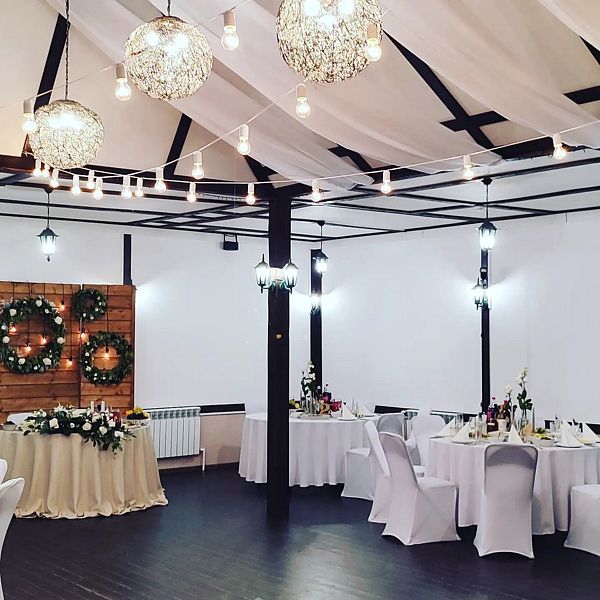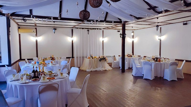 Выбор формата свадьбы может быть разнообразным — от камерного торжества до классического банкета с выездной росписью. Также предусмотрены дополнительные услуги, например, аренда террасы для фуршета или лаунж-зоны, приглашение ведущего и DJ, а также возможности для создания незабываемого визуального оформления с помощью проектора и ретро лампочек.