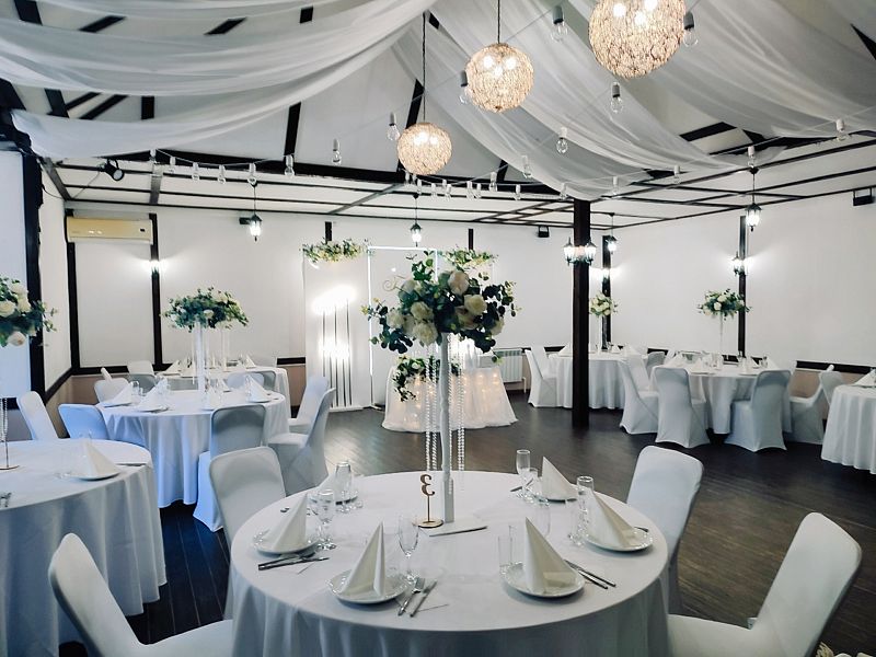 Банкетный зал «Белый ветер» — идеальное место для проведения свадеб, корпоративов и других праздников, вмещающее до ста гостей в формате банкета и до ста двадцати участников на семинарах или фуршетах. Это пространство хорошо подходит для любых торжеств, обеспечивая комфорт и стиль.