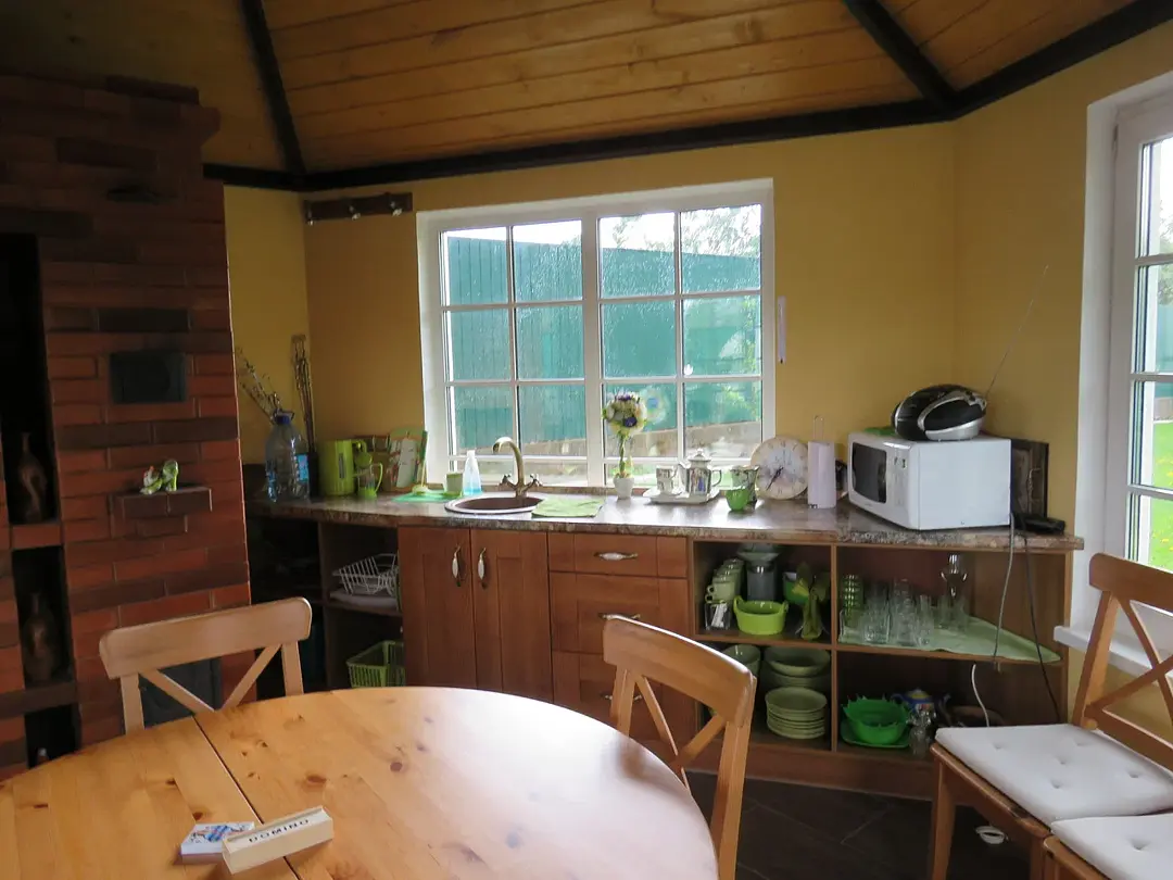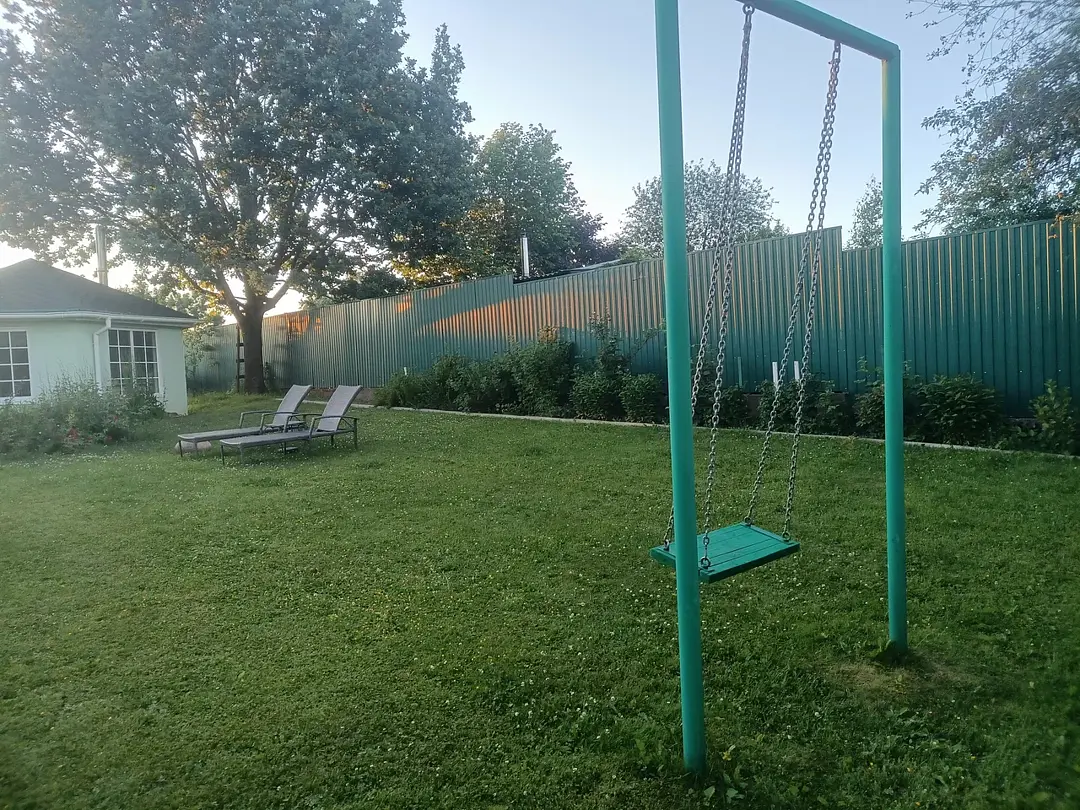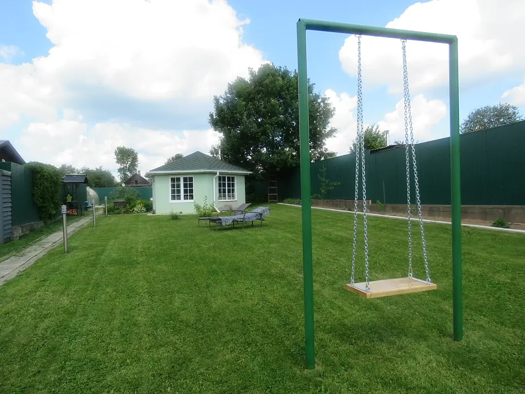 Территория гостевого дома отлично подходит для отдыха: оборудован уличный мангал, детские качели и шезлонги, а крытая тёплая беседка позволит комфортно отдохнуть в не зависимости от погодных условий.