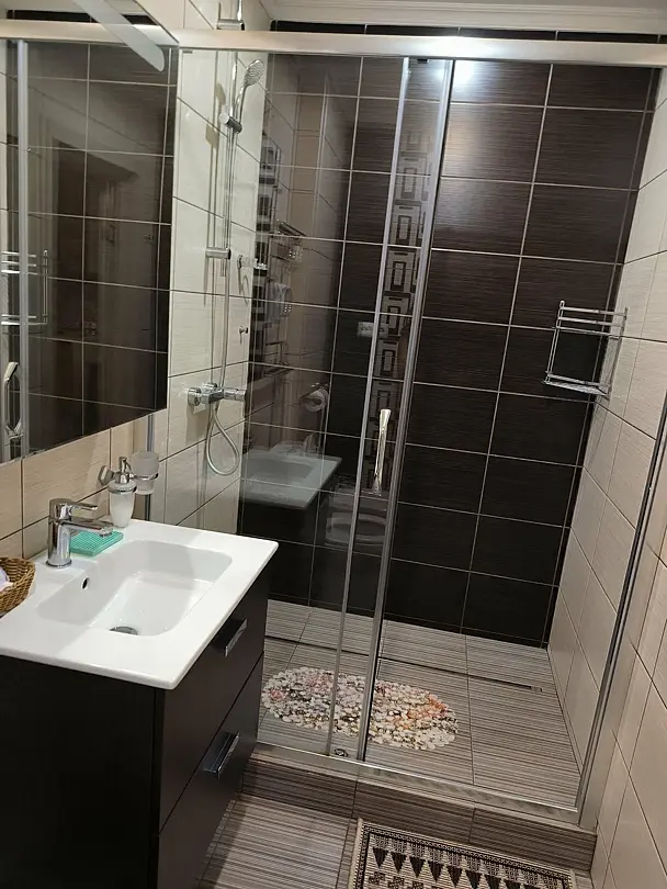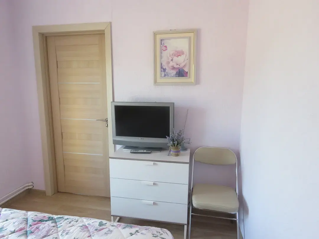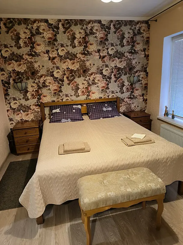1 гостевой номер 42 кв.м на четырех человек: 2 полностью укомплектованные спальни (двуспальная кровать, 2 прикроватные тумбочки, ночные светильники, тумбочка для белья, стулья, телевизор), кухня-гостиная (шкаф-купе, кухонный гарнитур, электрическая плита, вытяжная система, холодильник, микроволновая печь, телевизор, электрический чайник, полный набор посуды для приготовления пищи и еды, столовые приборы, чай, сахар и т.д.), санузел (испанская сантехника: душевая кабина 140х90, унитаз, биде, туалетный столик с зеркалом, фен, набор полотенец, туалетная бумага и т.д.). Кроватка малышу(бесплатно), по запросу возможна установка дополнительной кровати в номере.