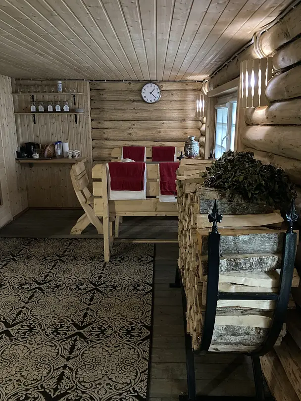 Инфраструктура: купель, зона отдыха, полотенца, простыни, шапочки, обливное ведро, душ, чай/угощенияРасположение: выход к рекеВ стоимость входят: веники, полотенца, простыни, чай, вода. (Просьба бронировать заранее или в день заезда)