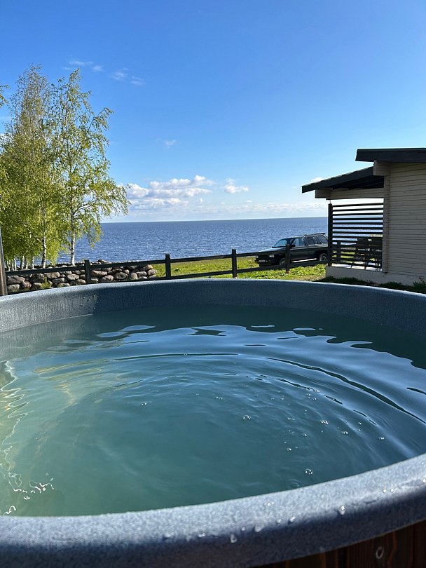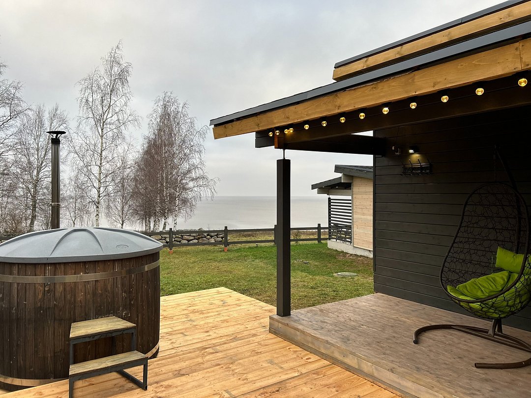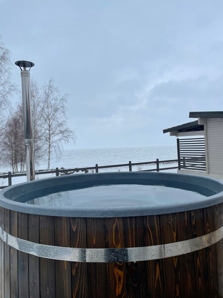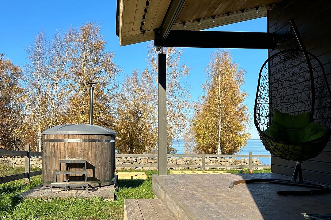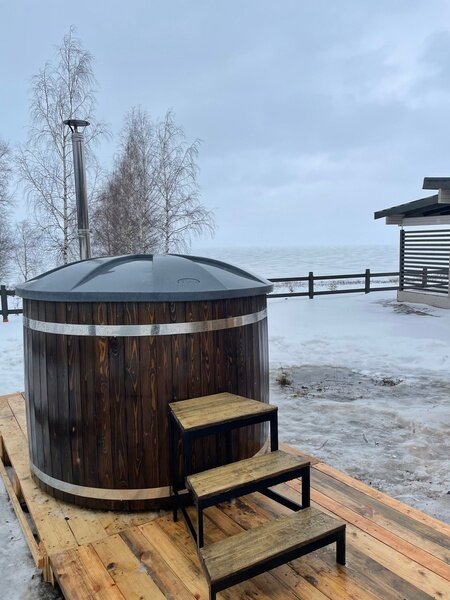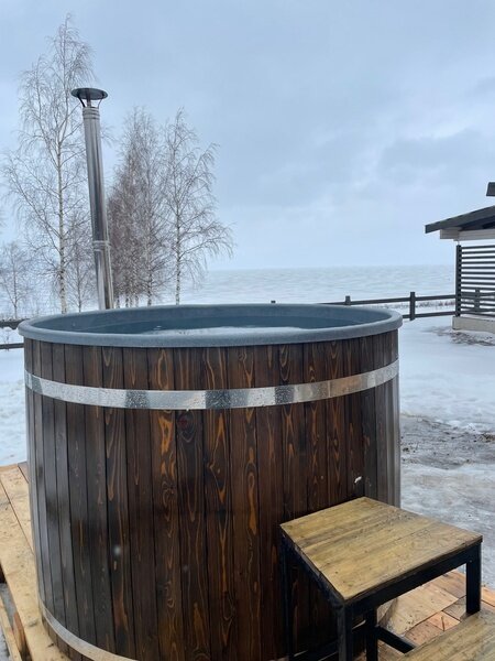 Гости имеют возможность насладиться парением на свежем воздухе в купели, наслаждаясь живописным видом на озеро Ильмень. Это опыт, который сочетает в себе отдых и гармонию с природой.