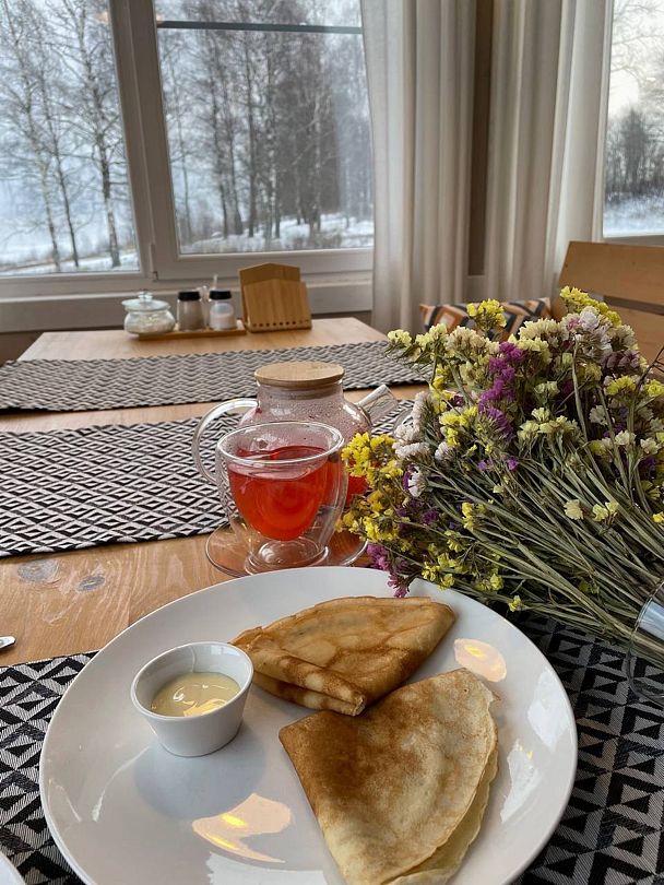 Для любителей активного отдыха предусмотрена русская баня на дровах, с которой открывается живописный вид на озеро. Просторная парная и зона для релаксации создают идеальные условия для восстановления сил и общения в кругу друзей или семьи. А возможность насладиться парением на свежем воздухе в купели добавляет уникальности вашему отдыху.
