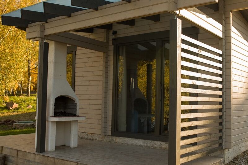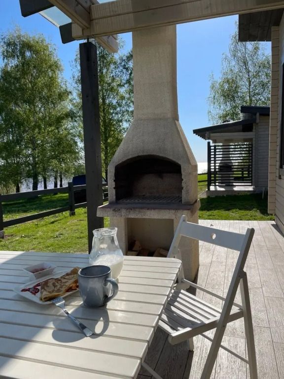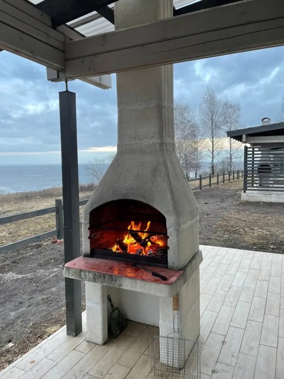 Крытая терраса с печью барбекю, где вы можете приготовить вкусный обед или ужин и наслаждаться живописным видом на озеро Ильмень.