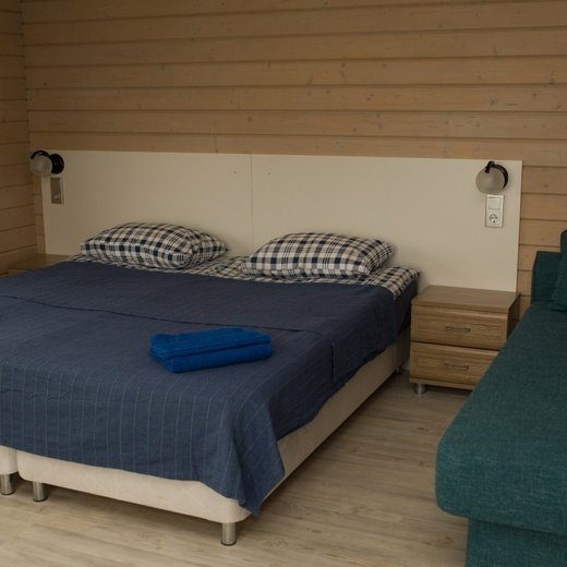 Просторный номер, который оснащен всем необходимым для комфортного проживания: двуспальная кровать, тахта для одного человека, мини-кухня с обеденной зоной и всей необходимой техникой, ванная комната с душевой кабиной, Wi-Fi и TV-система, полотенце и постельное белье.