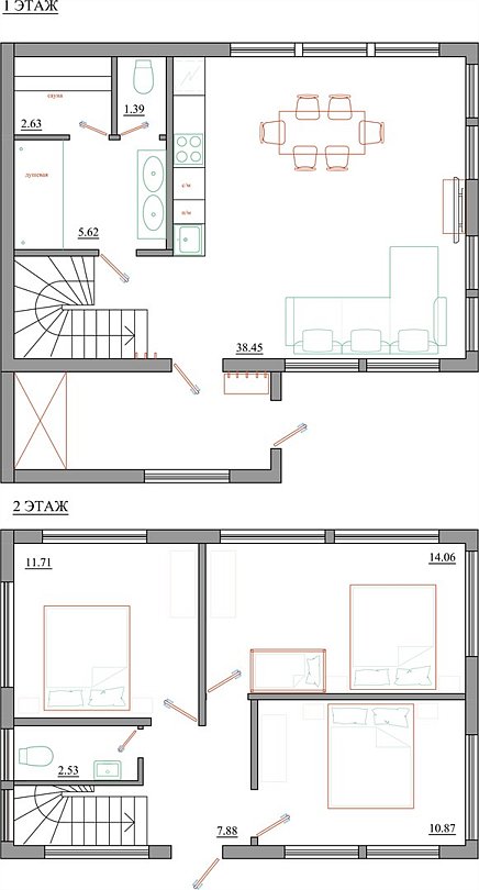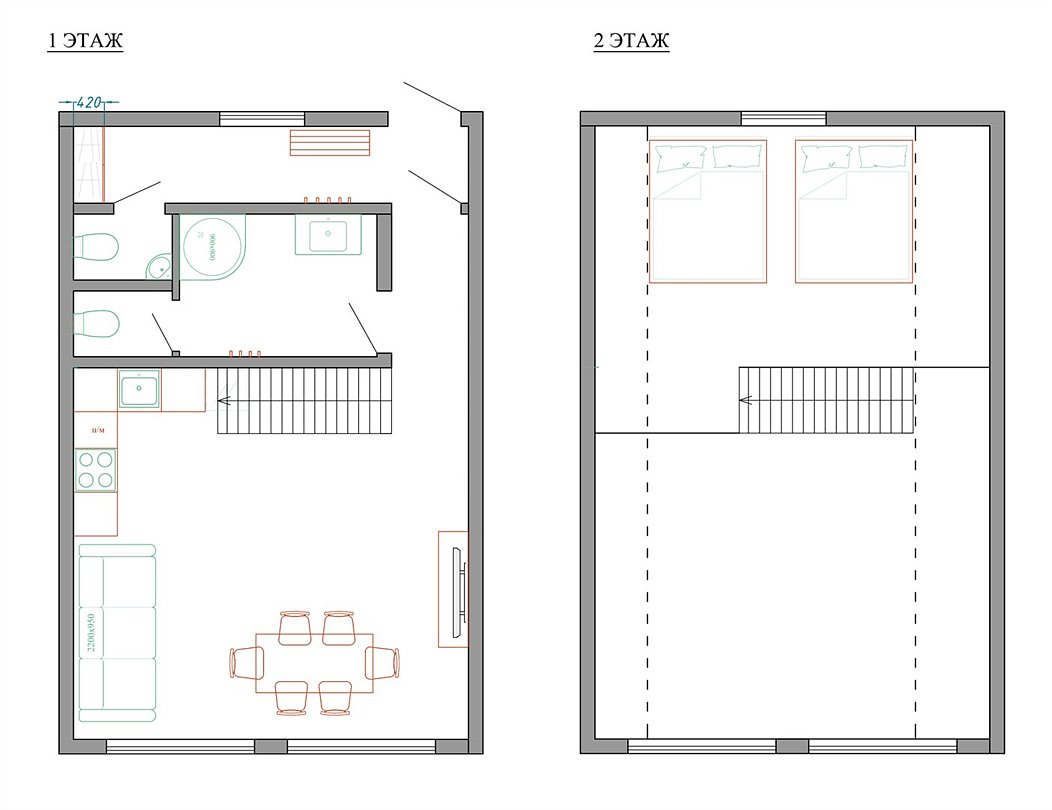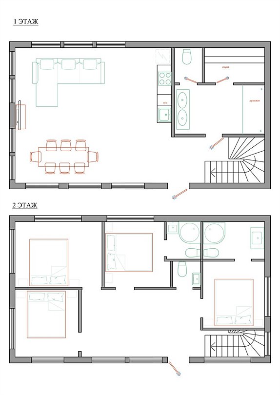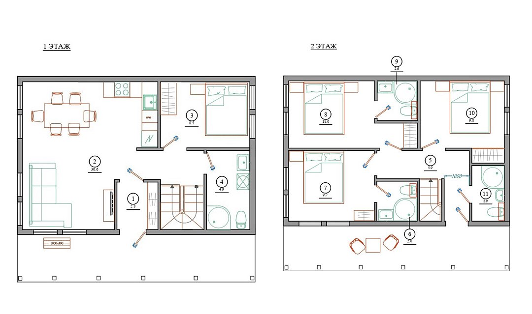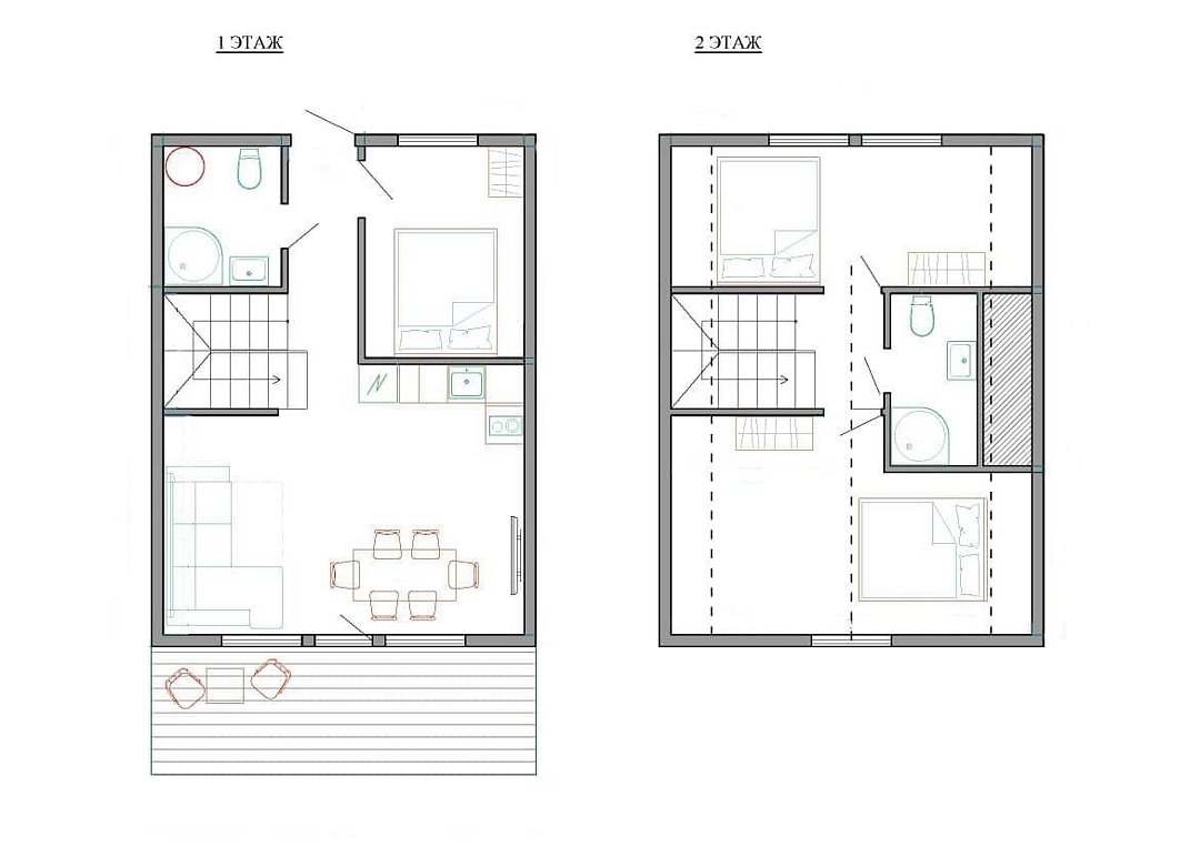 54 м2 · 6-и местный коттедж
