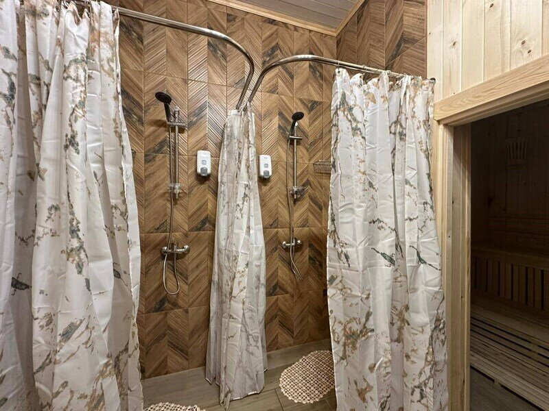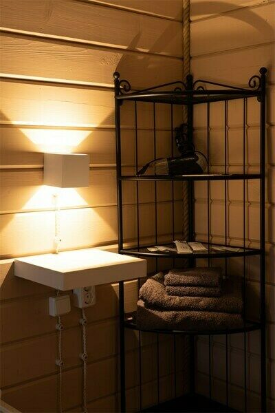 В домике - душ, туалет, сауна, шкаф для хранения вещей, TV, полноценная кухня со всем кухонным оборудованием. Постельное белье, полотенца, фен, одноразовые гигиенические принадлежности, тапочки и шапочка для душа входит в стоимость.
