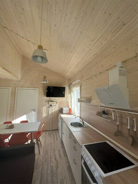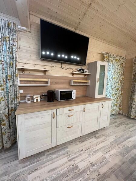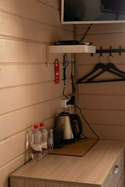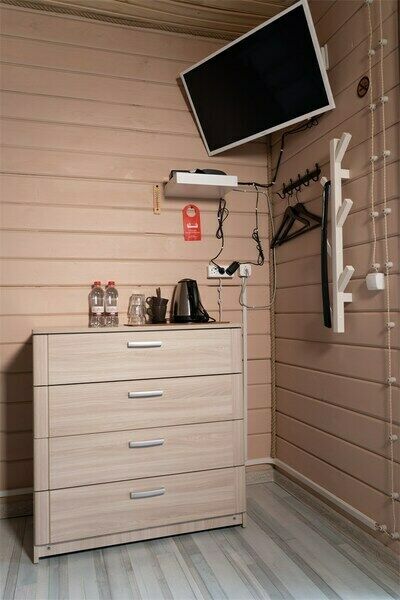Теплый уютный и комфортный домик. В домике - душ, туалет, комод для хранения вещей, TV, чайник. Постельное белье, полотенца, фен, одноразовые гигиенические принадлежности, тапочки и шапочка для душа входит в стоимость.